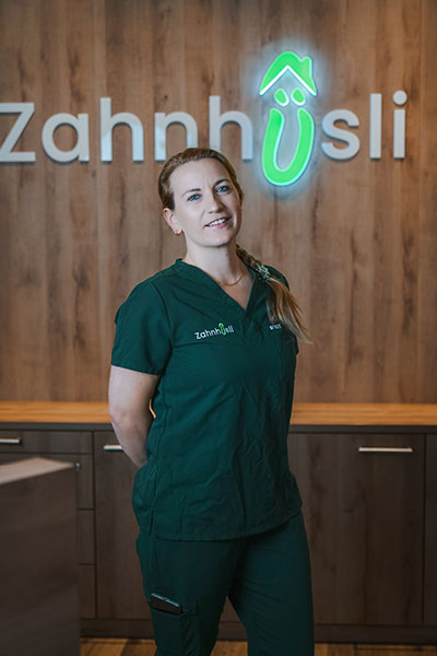 Jaqueline ist als Zahnmedizinische Prophylaxeassistentin unverzichtbar im Zahnhüsli-Team. Mit präziser Sorgfalt und einem geschulten Blick kümmert sie sich um die professionelle Zahnreinigung und persönliche Prophylaxeberatung – für langfristig gesunde Zähne.